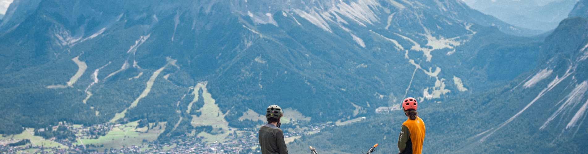 2000 Meter türmen sich die Felsen über Ehrwald auf bis zum Gipfel der Zugspitze. Der König von Deutschland, mit 2962 Metern Höhe der höchste Gipfel des Landes, ist aber ein Grenzgänger, am Gipfelgrat verläuft die Grenze zwischen Deutschland und Österreich. Und so steht der mächtige Klotz eben mit einem Fuß drüben in Bayern und mit einem Fuß hier in Tirol. Und gibt auch der Tiroler Zugspitzarena mit Stolz und breiter Brust seinen Namen. Nicht nur in Deutschland, auch hier im Norden Tirols ist die Zugspitze der Chef und macht Biker, Wanderer, Skifahrer klein vor Ehrfurcht – alle, die ihre Zeit im Schatten ihrer Westflanke, auf der Ehrwalder Alm, verbringen. Ehrfurcht ist ein Wort, das Transalp-Bikern nicht fremd ist.