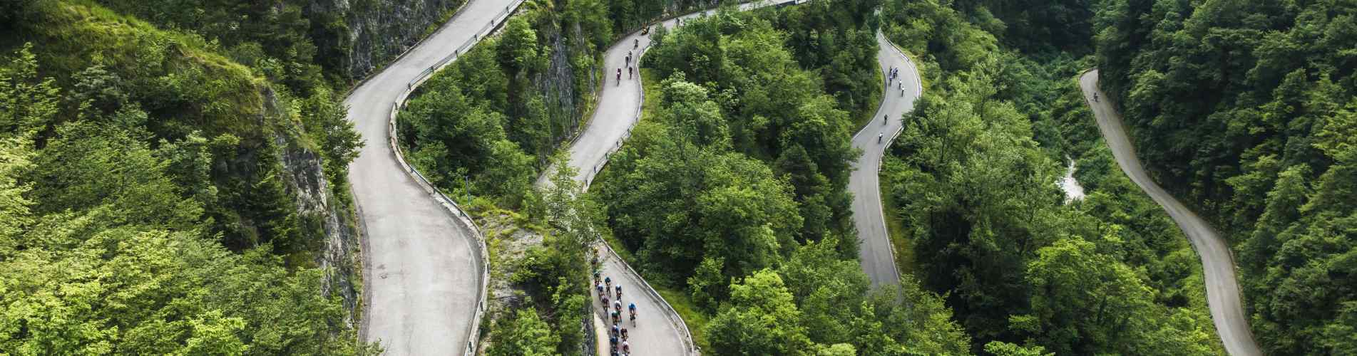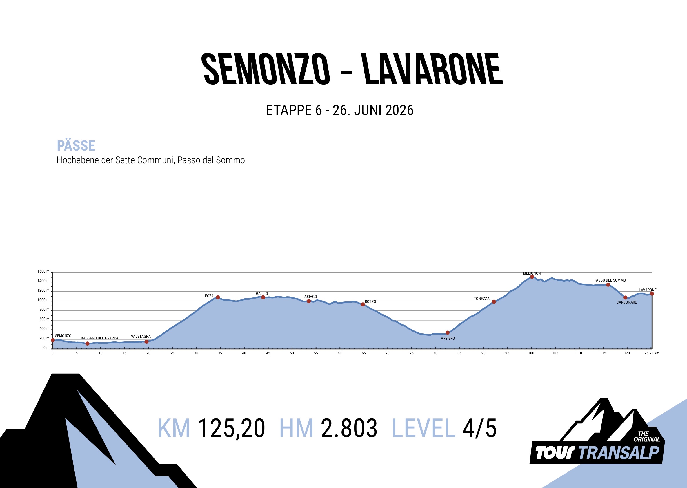 And once again, we immerse ourselves in a completely different world. Between Bassano del Grappa with the Brenta River and the Adige Valley near Trento further west, a vast plateau rises up. The eastern part of the Sette Communi, the seven municipalities around Asiago, is connected to the Alpe Cimbra further west, which includes the towns of Folgaria, Luserna and Lavarone, the destination of this stage. The huge rock slab has a few protrusions in the north that reach heights of over 2,000 metres, and on all sides there are rugged valley incisions, deep cracks in the edge, with steep walls forming imposing gorges. One of these gorges is Valstagna, with one of the most bizarre roads in Transalp history. The road winds its way up the wall in hairpin bends, like steep steps. But there are no straight sections between the bends. Here, curves follow curves, a single winding route that is infinitely spectacular. After 800 metres of dizzying climbing, you reach Foza, the first village of the Sette Communi.