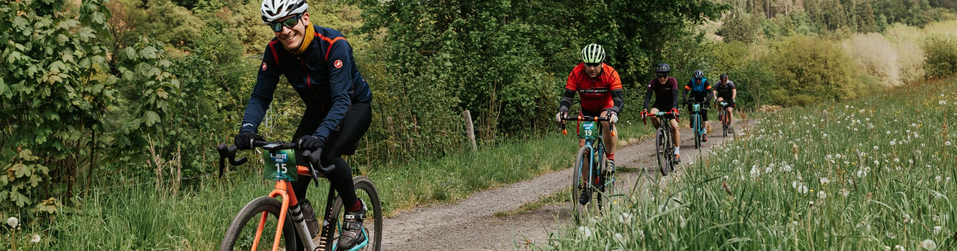 The Gravel Ride is based on GPX data and will only be signposted at some points. The two time trials at 21.5km and 33km will be clearly signposted. A GPX-compatible navigation device is recommended for all participants.